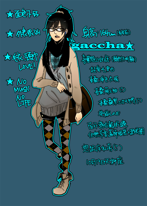 -溫馨,青春必死 -絕對超短髮控 -大型犬控. -疑似眼鏡控(?). -我愛少年(?). -no music no life. -喜歡有禮. -慢熱. -熱愛繪圖.